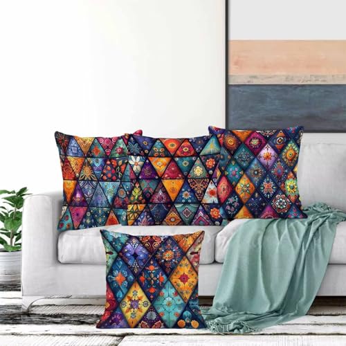 【LIEFERUMFANG】Kissenbezug 4er set mit grafischen motiven. sofakissen sind in verschiedenen farbkombinationen erhältlich und passen zu verschiedenen bettwäschen. Hinweis: Kissenkern nicht im lieferumfang enthalten