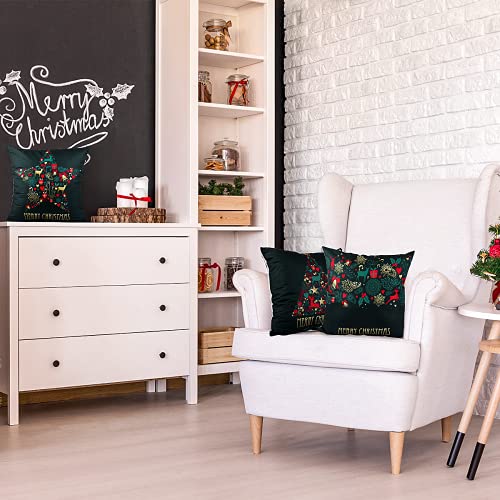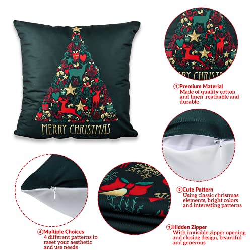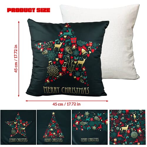 Kissenbezug Weihnachten, 4 Stück Weihnachten Dekokissen, Weihnachts Kissenbezüge, Weihnachten Leinen Dekokissen mit Verstecktem Reißverschluss, 45x45cm Weihnachten Deko Kissen für Couch Bett Auto