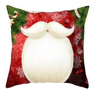 Kissenbezug Weihnachten Modern, Karierter Hintergrund Weihnachtsmann Bart Couchkissen 40x40CM Dekokissen für Sofa, Couch, Bett und Auto Rot Grün