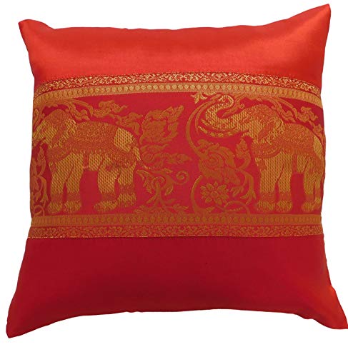 Kissenhülle 40 cm x 40 cm dekorativ Elefanten Motiv rot Thai Silk Dekokissen Sofakissen Schlafzimmer