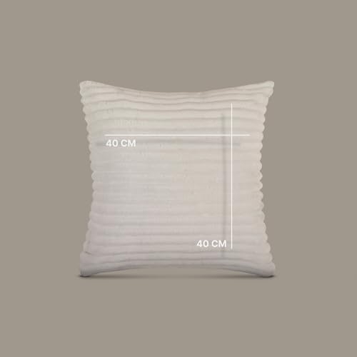 Kissenhülle 40x40cm (Creme) Cord Optik – Kuschelig weicher Bezug mit Reißverschluss – Kissen – Öko Tex – ideale Hülle für Sofakissen, Dekokissen