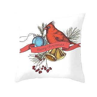 Kissenhülle Weihnachten, Papagei und Glocke Couchkissen 40x40cm Dekokissen für Sofa, Couch, Bett und Auto Rot Weiß