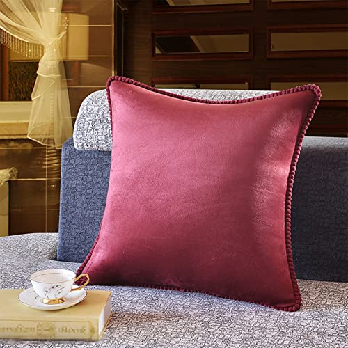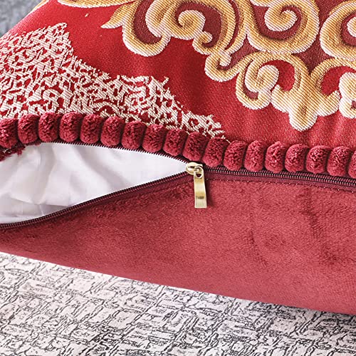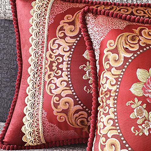 Kissenhüllen, Kissenbezüge 50cm/60cm, Große Quadratische Kissenbezüge 2er Abschaum Gestickt Jacquard, europäischen Stil Dekorative Dekokissen Cove Reißverschluss (Rot, 60cm)
