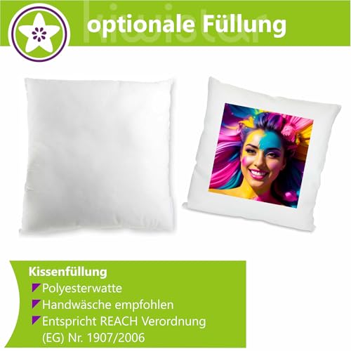 Kiwistar – Fotokissen Bezug 40×40 cm weiß – selbst gestalten – beidseitig – mit Foto und Wunschtext – individuell Bedruckt – personalisiert – Geschenkidee – Kopfkissen – Fotogeschenk