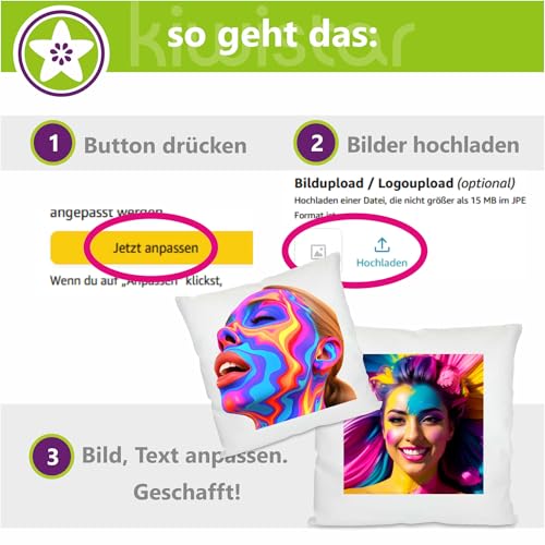 Individuell gestaltbar: Lassen Sie Ihr Lieblingsfoto oder Design auf ein hochwertiges Kissen drucken. Ideal wie persönliches Geschenk, um besondere Momente unvergesslich zu machen. Perfekt statt jeden Anlass.