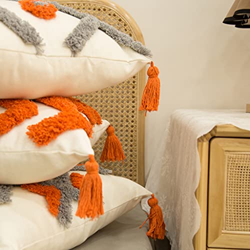 Nordic Gray getuftetes Dekokissen für Absicherung mit gewebter Stickerei, geometrisch gestreift, dekoratives quadratisches Kissen
