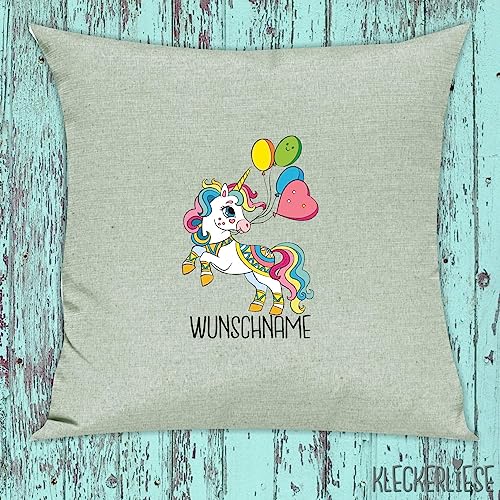 Kleckerliese Kissen Kissenhülle 40x40cm Kissenbezug Tiermotiv Tiere Einhorn Wunschname personalisiert, Farbe Rosa