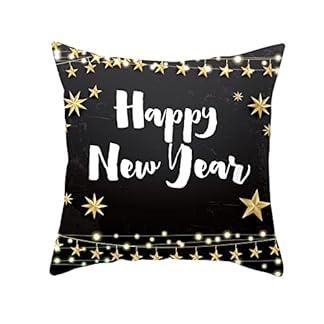 ❤ MODE-DESIGN: Kissenbezug mit Stern „Happy New Year“ Muster auf der Oberfläche. Der glatte unsichtbare Reißverschluss lässt den Sofakissenbezug schöner und einfacher aussehen.