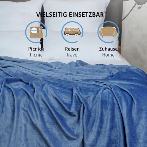 Komfortec Extra Warme Kuscheldecke Flauschig, Wohndecke, Fleecedecke, Oeko-TEX Zertifiziert, Superweich, 150×200 cm, 450 g/m², Blau