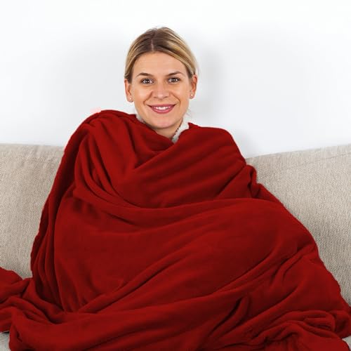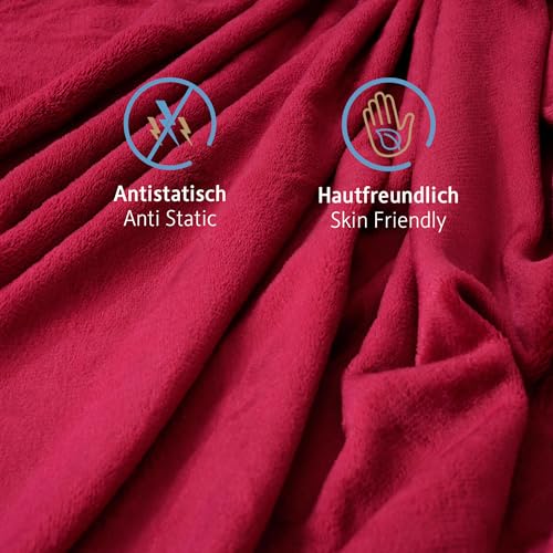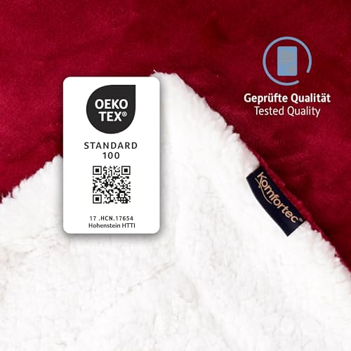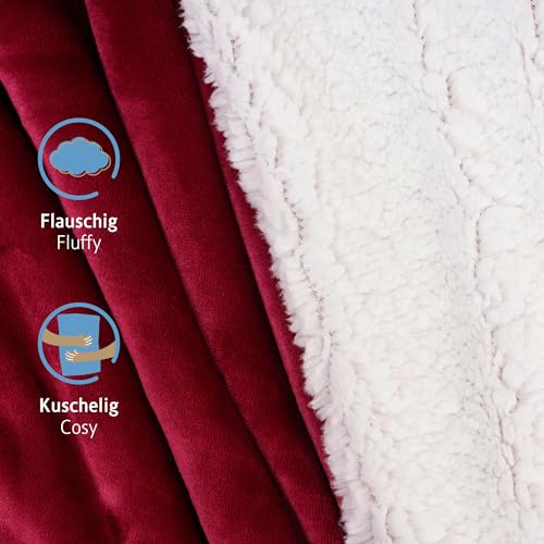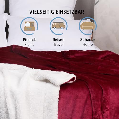 Komfortec Kuscheldecke 220×240 cm, Oeko-TEX Zertifizierte Flauschig Fleecedecke, warm Sherpa Sofaüberwurf, Dick Sofadecke, Burgund