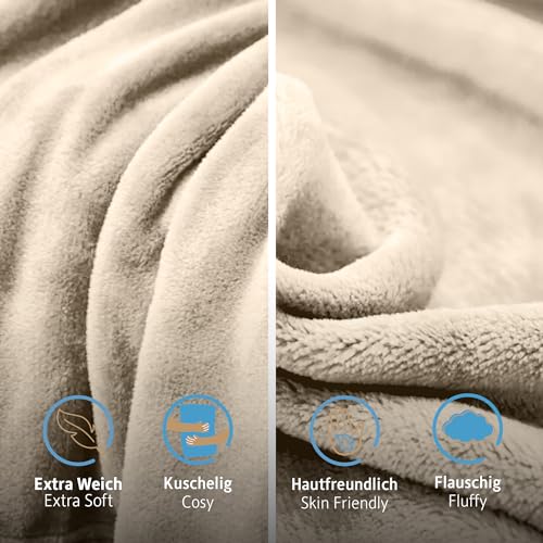 Komfortec Kuscheldecke Flauschig, Wohndecke, Fleecedecke, Oeko-TEX Zertifiziert, Superweich, 150×200 cm, 260 g/m², Beige