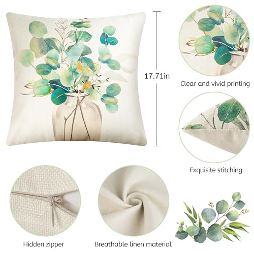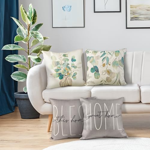 KOUGAS Kissenbezug 40×40 cm 4er Set Dekokissen Kissenbezüge Dekoration Outdoor Kissenbezüge Leinen Dekokissen für Schlafzimmer, Sofa, Stuhl, Bett Bedruckte(grau Grün)