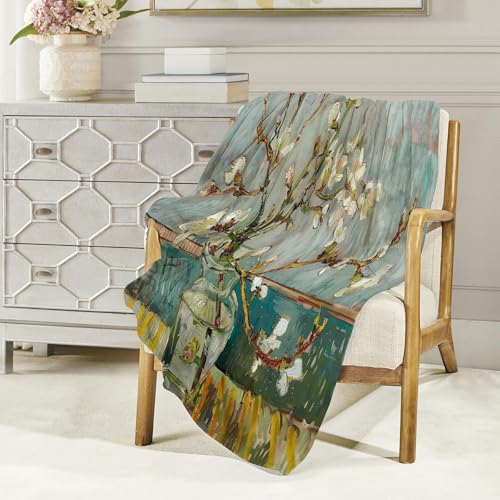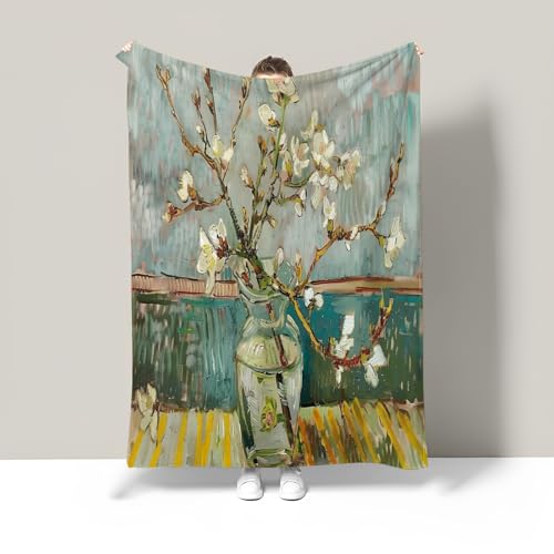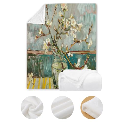 【Angenehm warm】: Wir haben unsere klassische Flanell-Fleecedecke verbessert, damit sie noch weicher gemütlich und hautsympathisch. jetzt mit verbesserter Mikrofaser. Auflage mit Vase Zweige muster auf Oberseite, Rückseite in Weiß. Die exquisiten Farben verleihen dieser Decke ein eleganteres und eleganteres Aussehen und verleihen Ihrem Zimmer ein schickes Ambiente.