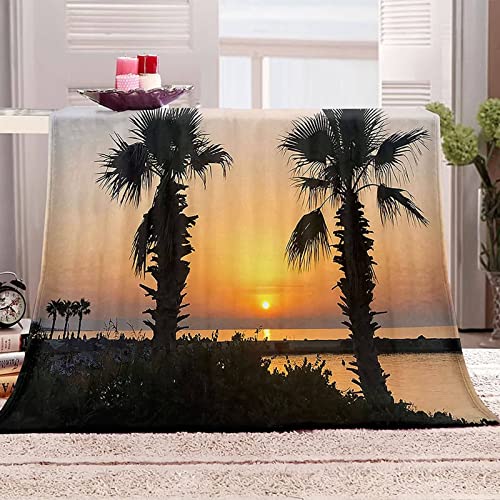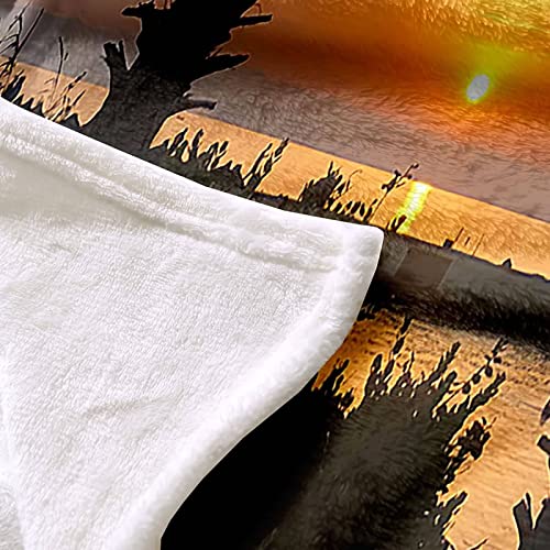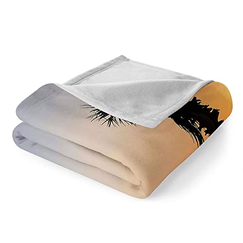 Kuscheldecke 180×220 Schwarz, Blanket Velvet Flanell Orange Sonnenuntergangsbaum Flanelldecke Weich Warm Wohndecke Sofa Bett Geschenk