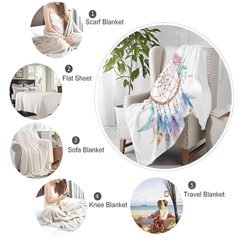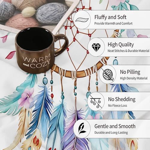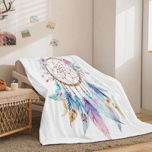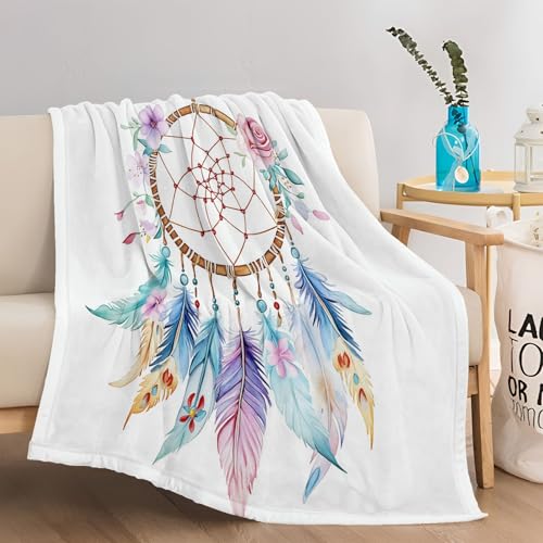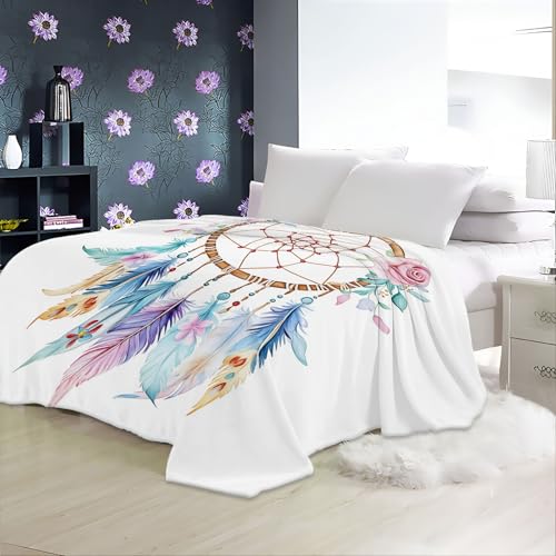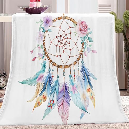 Kuscheldecke 220 x 240 cm Einfach Traumfänger Blumen Bunt, Warm Flauschig Flanell Kuscheldecke für Herbst Winter, Weichen Bequem Drucken Decke als Sofadecke Schlafdecke Bettüberwurf