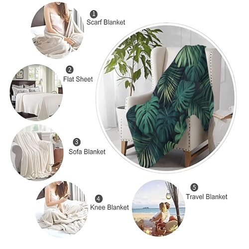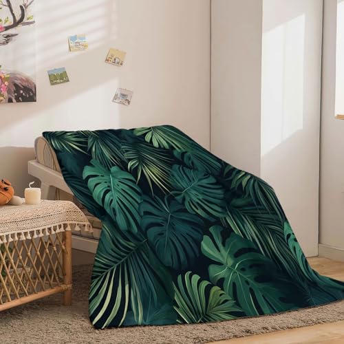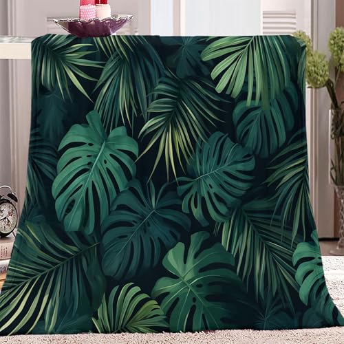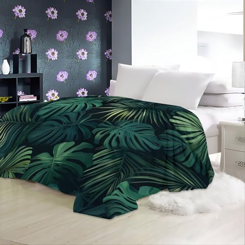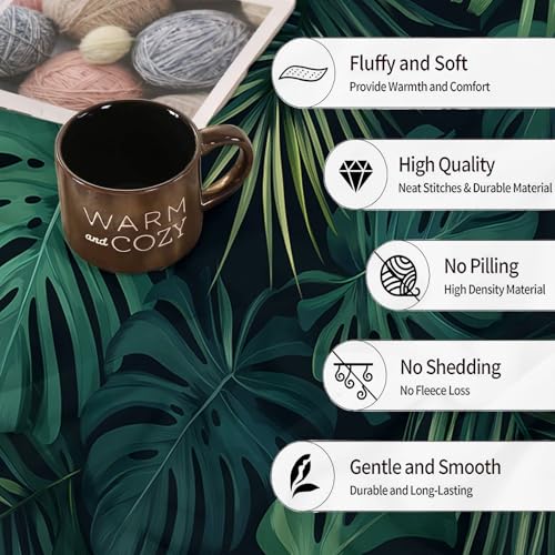 Kuscheldecke 220 x 240 cm Pflanzen Üppige Blätter Schwarz Grün, Warm Flauschig Flanell Kuscheldecke für Herbst Winter, Weichen Bequem Drucken Decke als Sofadecke Schlafdecke Bettüberwurf