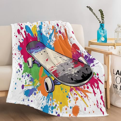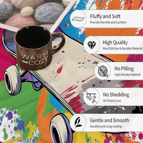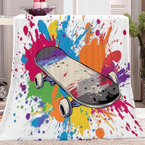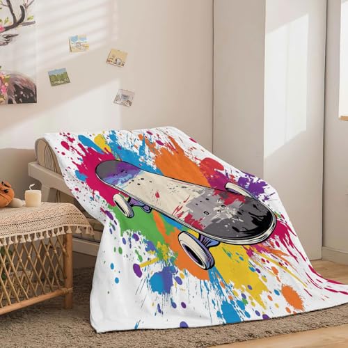 Kuscheldecke 220 x 240 cm Sport Straßenkunst Skateboards Bunt, Warm Flauschig Flanell Kuscheldecke für Herbst Winter, Weichen Bequem Drucken Decke als Sofadecke Schlafdecke Bettüberwurf