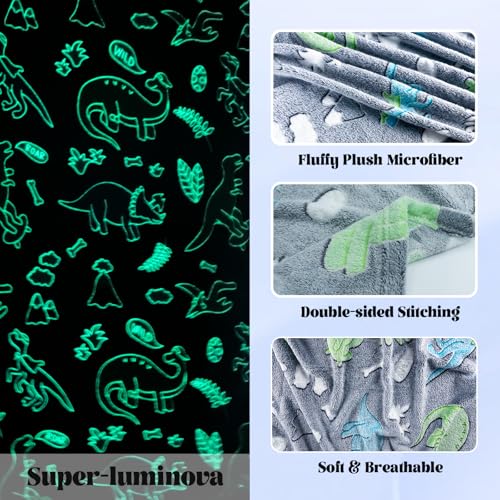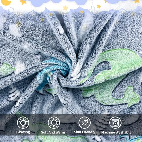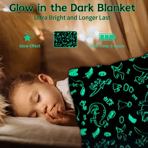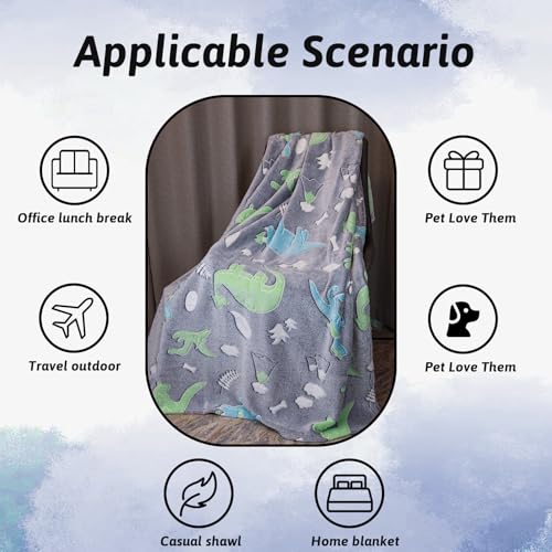 Einzigartig Design — Die Decke wird aufgeklappt, in die Sonne oder helle Lichtquelle für 5-10 Minuten gelegt und demzufolge an einem dunklen Ort platziert, außerordentlich magisch und interessant.Die flauschige mit Dinosaurier-Muster Decke schafft eine wunderschöne Atmosphäre in Ihrem Schlafzimmer.Genießen Sie und Ihre Kinder die süßen Träume mit den Nachthimmel!