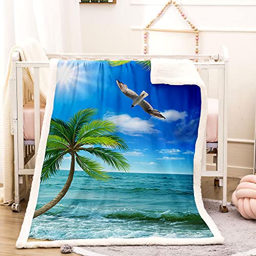 Kuscheldecke Flanell Decke 80X150Cm 3D Drucken Microfaser Weich Flauschige Warm Plüsch Wohndecke Blaue Meereslandschaft Muster Tagesdecke Fleecedecke Winterdecke Für Sofa Und Bett