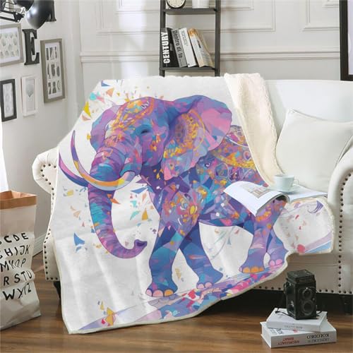Kuscheldecke Flauschig 130×150 cm 3D Bunte Elefanten Abstrakte Kunst Muster Decke Kunst-Lammwolle Tagesdecke Samtig Verdickend Blanket Bequem Warm Sofadecke Fleecedecke Geeignet für alle Jahreszeiten