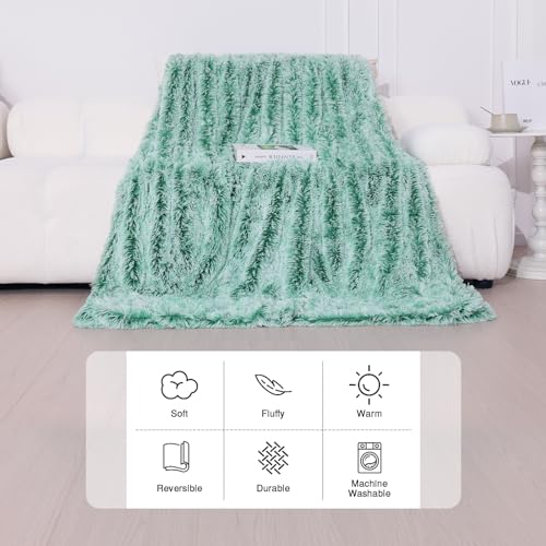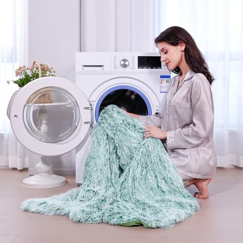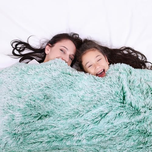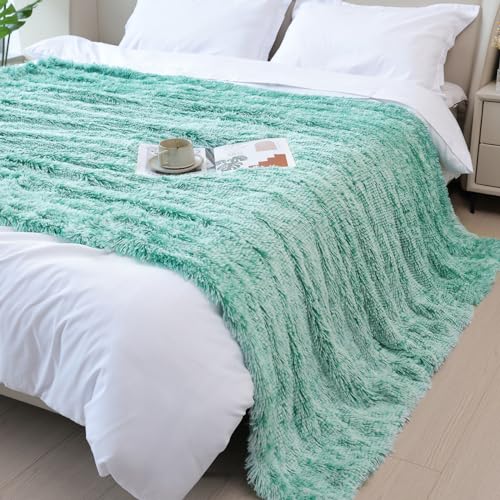 【2023 NEUESTER FÄRBEPROZESS】KNAKAUE 2023 neuester Färbeprozess, so dass die flauschige decke Farbe von dunkel zu hell, um einen Gradienteneffekt zu erreichen, geschichtetes Farbdesign, einzigartig und unverwechselbar. Grün Farbe ist dunkler, die Spitze der weißlich, können Sie die doppelten Farben zu sehen, wenn Sie es streicheln, Kaskadierung und wechselnden, modisch und schön.