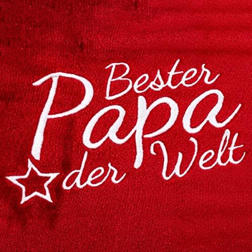 Kuscheldecke flauschig Bester Papa der Welt, Geschenk zum Vatertag, Geburtstag, hochwertig Bestickt, 150cm x 200cm extra weiche und gemütliche Sofadecke/Wohndecke, hochwertiges Fleece (Rot)