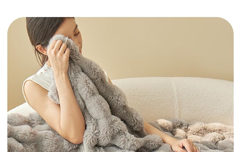 Doppelseitige Kuscheldecke: Decke ist Kaninchen Plüsch und die, der Flor ist wohlbeleibt und weich, sehr warm auf der Haut, diese Winterkuscheldecke kann auf beiden Seiten verwendet werden, einfach, stilvoll und elegant.