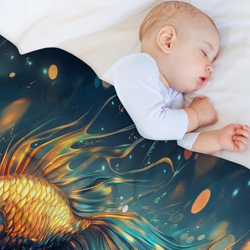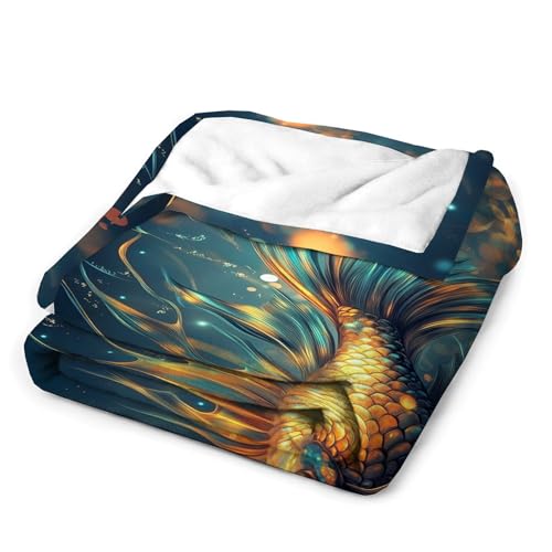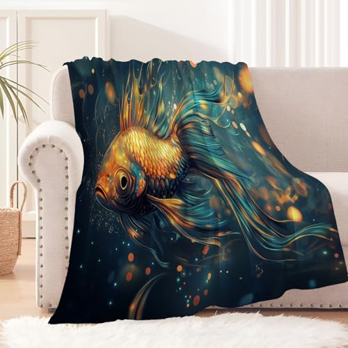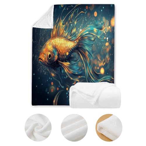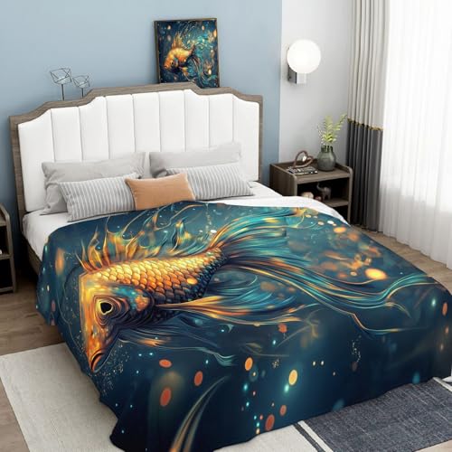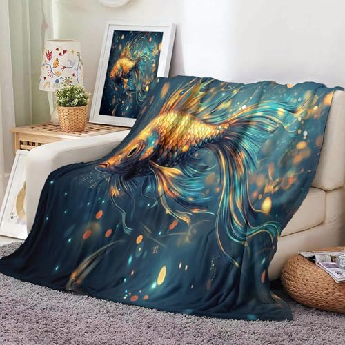 Kuscheldecke Flauschig – Farbige Fische Wolldecke & Flanell Fleecedecke, Unterwasserlebewesen Sofadecke, Weiche Warme Kuscheldecken für Zimmer Deko, Grau Blau-130x150cm