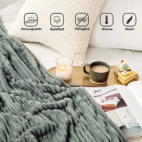 Kuscheldecke Flauschig, Fleecedecke Flanell Decke, Warm Wohndecken Couchdecke Mikrofaser Tagesdecke Sofadecke Für Bett Sofa Schlafzimmer 150x200cm Grün