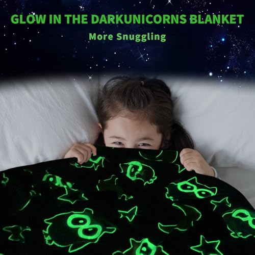 ✨【Einzigartiges leuchtendes Design】Die Decke wird aufgeklappt, in die Sonne oder helle Lichtquelle für 5-10 Minuten gelegt und dann an einem dunklen Ort platziert, wird sie leuchten, sehr magisch und interessant. Genieße süße Träume mit dem Nachthimmel! Flauschige Decke mit Einhorn-Muster leuchtet im Dunkeln und schafft eine wunderbare Atmosphäre in Ihrem Schlafzimmer.
