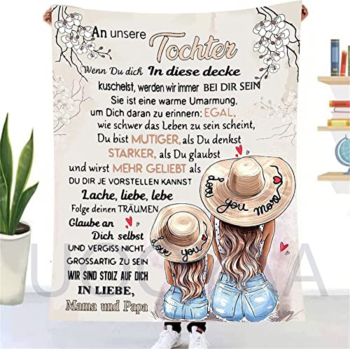 Auzkong Personalisierte kuscheldecke Mutter An Meine Tochter, Flanelldecke Geschenke, Klimaanlage Decken, Brief gedruckte Decke von Papa zu Töchter, Mama & Papa an Tochter Geschenke