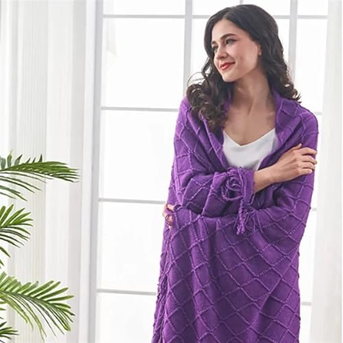 Die Decke eignet sich als Raumdekoration im Landhausstil und im Bohème-Stil. Schönes, erhabenes, rautenförmiges Strickdesign und übersichtliche Fransen. Auf dem Sofa, Stuhl oder Bett platziert, ergänzt es perfekt den dekorativen Stil des Raumes.