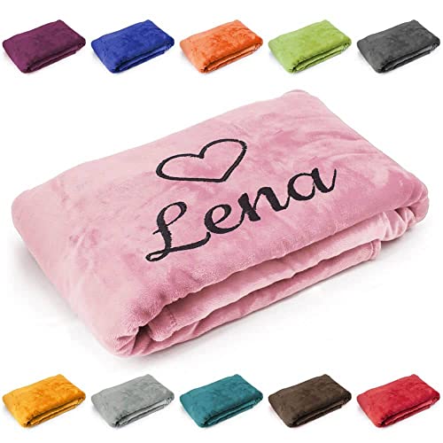 Kuscheldecke ‚Herz‘ mit Name oder Wunschtext bestickt, Geschenk zu Valentinstag, Geburtstag, Hochzeitstag, 200cm x 150cm extra weiche und gemütliche Sofadecke/Wohndecke, hochwertiges Fleece (Babyrosa)