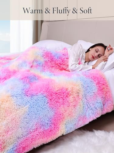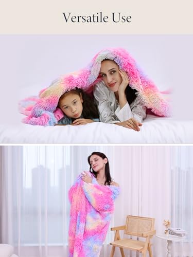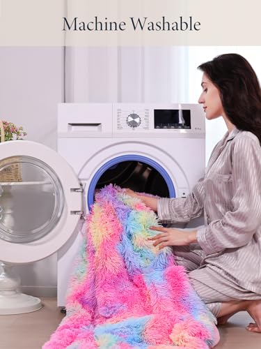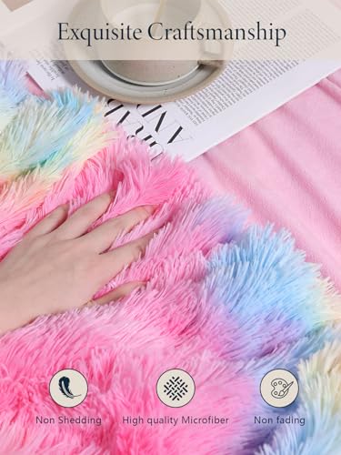 ✨【Warmes Geschenk】Die flauschige decke ist helle regenbogen, fügt eine warme und schöne Atmosphäre zum Universum hinzu, beliebt beim Publikum. Die decken ist die beste Wahlgang für Ihren Geburtstag, Weihnachten und andere Festtagsgeschenke.