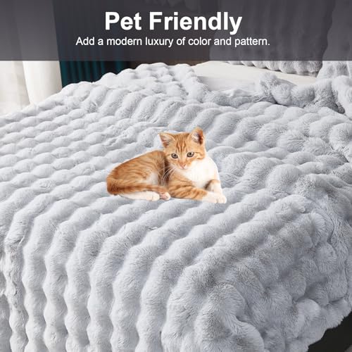 Bringen Sie luxuriöse Eleganz in Ihr Zimmer: Unser Überwurf hat ein wunderschönes Strukturmuster, das ihm einen einzigartigen und modernen, luxuriösen Look verleiht. Der texturierte Kaninchenplüschstoff sorgt für ein weicheres Plüschgefühl als Samt und ein massageähnliches Gefühlsausbruch. Sie sind beständiger gegen Ausbleichen und Flecken als Baumwolldecken und sehen nach maximalen Komfort.