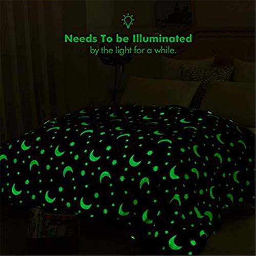 🌟【Leuchtendes Design】 Das Stern- und Mondmuster auf der Kinderdecke leuchtet nachts magisch und schafft eine wunderbare Atmosphäre, um die Kinder ins Bett zu begleiten. Entfalte die Decke und lege die Sterne und den Mond für 5-10 Minuten in die Sonne oder eine helle Lichtquelle, dann lege sie in die Dunkelheit und sie leuchtet.
