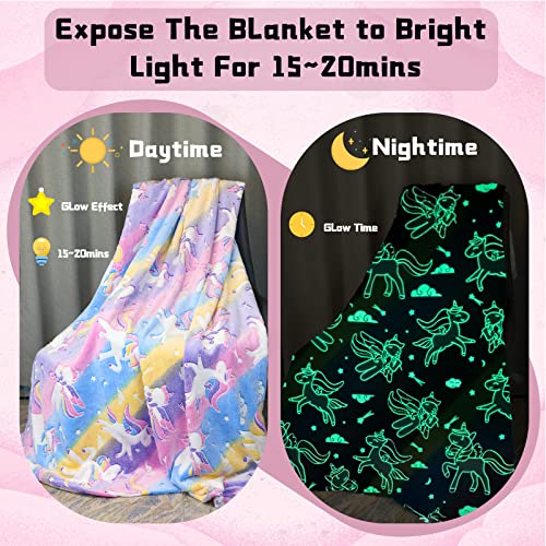 ✨【Perfekte Einhorn Geschenke Für Mädchen】: 130*150cm/ 150*200cm, Sie können das Recht nach Bedarf abkommandieren.Perfekte Geschenke für Kinder und Liebsten zum Geburtstag, Weihnachten, Kindertag, Halloween,Thanksgiving usw. Die Decken leuchten im Dunkeln, um Kinder zu lustigen Ideen zu inspirieren und sie das magische Leuchten in der Nacht genießen zu lassen.