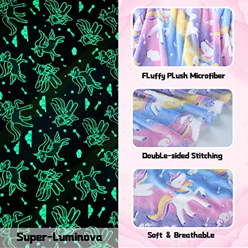 🌈【Leuchtendes Design】Die Decke wird aufgeklappt, in die Sonne oder helle Lichtquelle für 5-10 Minuten gelegt und als Folge an einem dunklen Ort platziert, wird sie leuchten, enorm magisch und interessant. Genieße süße Träume mit dem Nachthimmel! Flauschige Decke mit Einhorn-Muster leuchtet im Dunkeln und schafft eine wunderbare Atmosphäre in Ihrem Schlafzimmer.