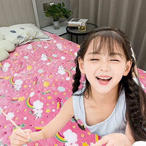 ✨【Hochwertiges Flanellmaterial】Die leuchtende Einhorn Decke ist nicht mehr da hochwertigem Flanell, einlagig verdickt, fein und weich Daunen, angenehm zu berühren und sehr warm. langlebig und luxuriös in allen Jahreszeiten, bringt Ihnen eine angenehme und komfortable Erfahrung.