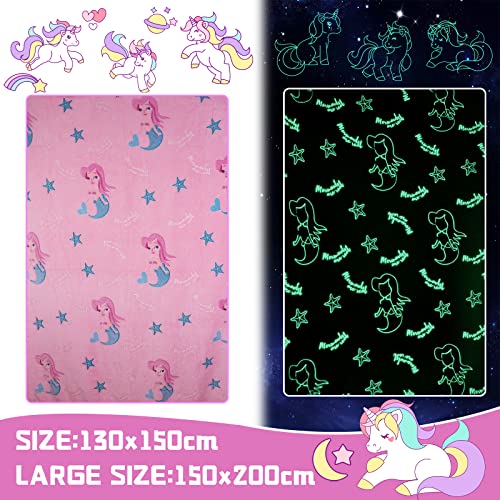 ✨【Hochwertiges Flanellmaterial】Die leuchtende Einhorn Decke ist jedweder hochwertigem Flanell, einlagig verdickt, fein und weich Daunen, angenehm zu berühren und sehr warm. langlebig und luxuriös in allen Jahreszeiten, bringt Ihnen eine angenehme und komfortable Erfahrung.