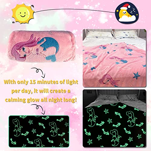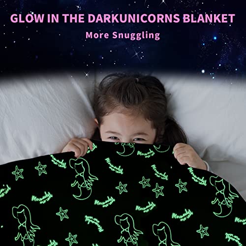 ✨【Einzigartiges leuchtendes Design】Die Decke wird aufgeklappt, in die Sonne oder helle Lichtquelle für 5-10 Minuten gelegt und dann an einem dunklen Ort platziert, wird sie leuchten, sehr magisch und interessant. Genieße süße Träume mit dem Nachthimmel! Flauschige Decke mit Einhorn-Muster leuchtet im Dunkeln und schafft eine wunderbare Atmosphäre in Ihrem Schlafzimmer.