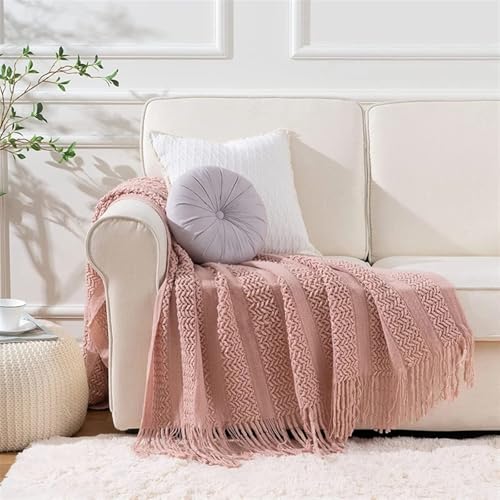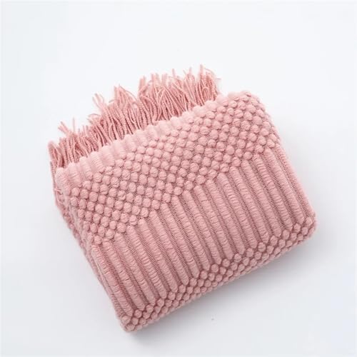 Kuscheldecke Rosa gestrickte Überwurfdecken mit Quasten, , strukturiert, Boho, ganzjährig, Vintage, klobige, gemütliche Geschenkdecken, Manta Para Sofá Decke werfen Für Sofa und Stühle,Bett(DX pink)