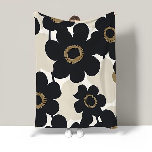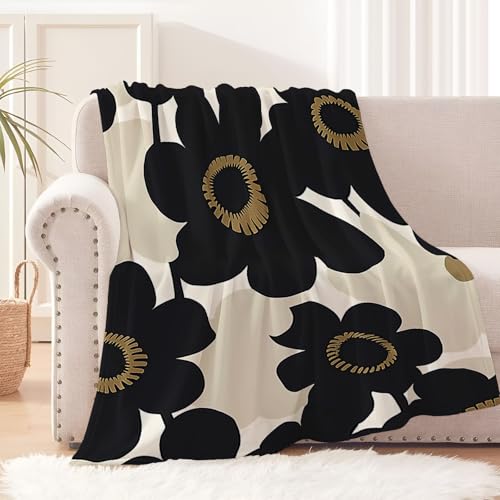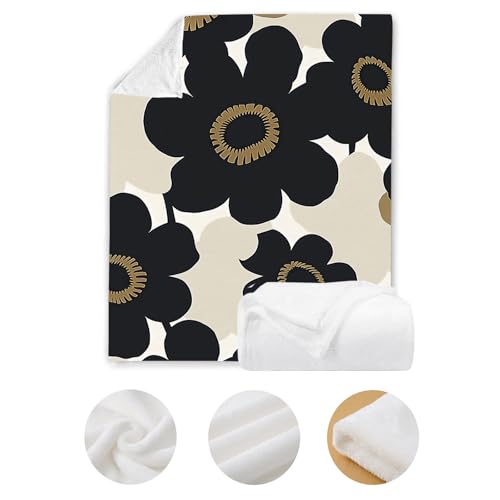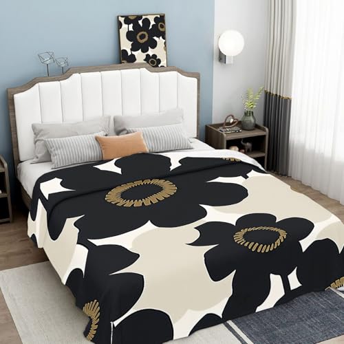 Kuscheldecke Schwarze Blumen Flauschig Decke Modernismus Fleecedecke – Wohndecke Warm Weich, Sofadecke XXL, Decke Couch Blanket, Sofa überwurfdecke, Beige-220x240cm
