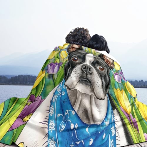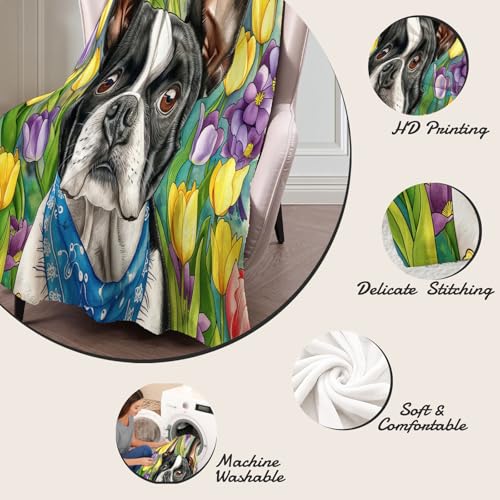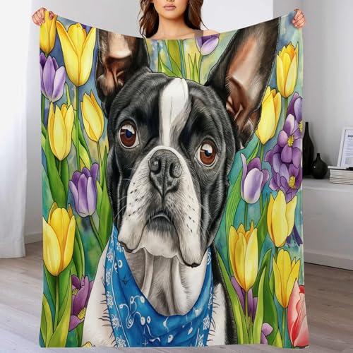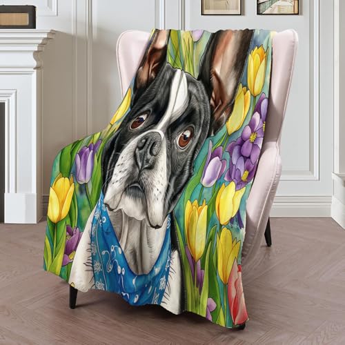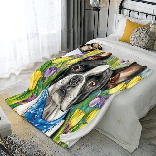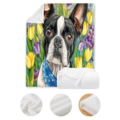 【Angenehm warm】: Wir haben unsere klassische Flanell-Fleecedecke verbessert, damit sie noch weicher gemütlich und hautsympathisch. jetzt mit verbesserter Mikrofaser. Druckerzeugnis mit Tulpe Hund muster auf Oberseite, Rückseite in Weiß. Die exquisiten Farben verleihen dieser Decke ein eleganteres und eleganteres Aussehen und verleihen Ihrem Zimmer ein schickes Ambiente.
