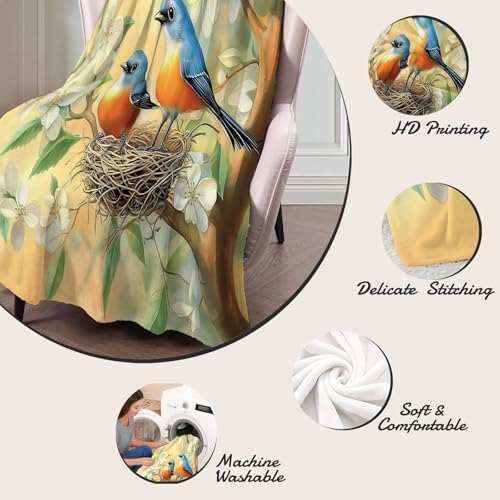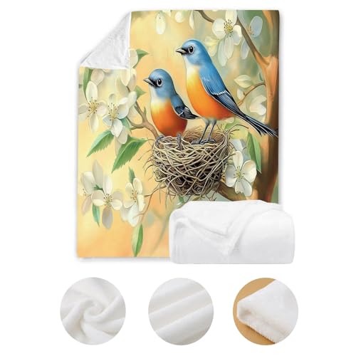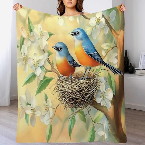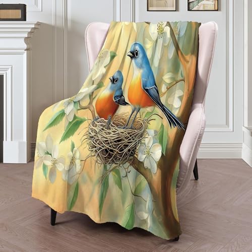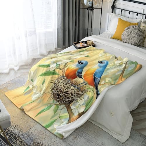 【Angenehm warm】: Wir haben unsere klassische Flanell-Fleecedecke verbessert, damit sie noch weicher gemütlich und hautsympathisch. jetzt mit verbesserter Mikrofaser. Delle mit Vogelnest Vogel muster auf Oberseite, Rückseite in Weiß. Die exquisiten Farben verleihen dieser Decke ein eleganteres und eleganteres Aussehen und verleihen Ihrem Zimmer ein schickes Ambiente.