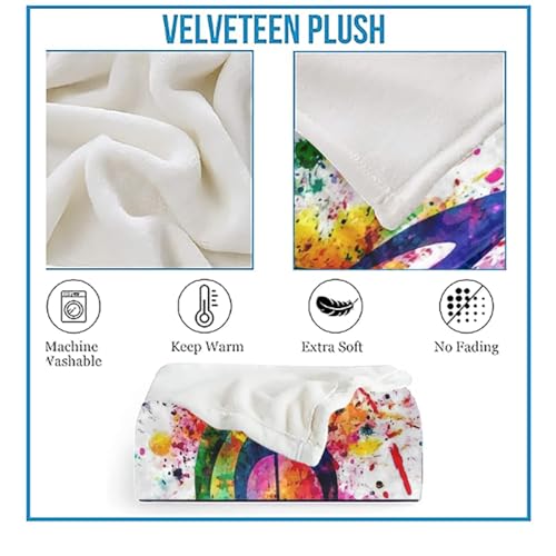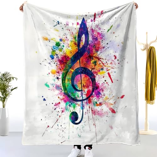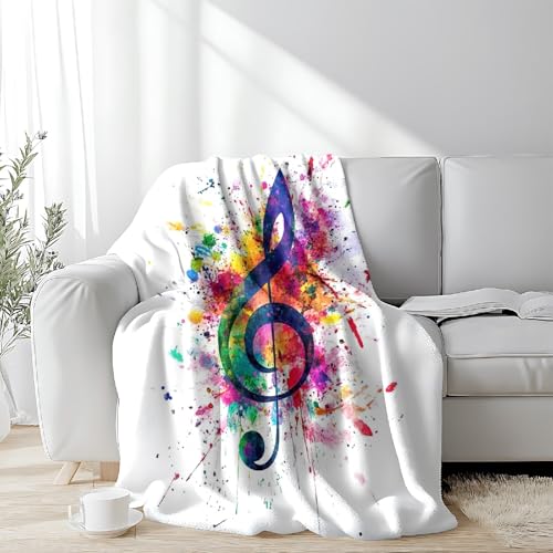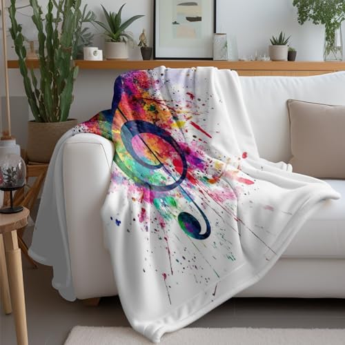 Kuscheldecken XXL 180×220 cm Weich Flauschig Bunte Musiknoten-Graffiti Flanell Fleecedecke, Weiß Kuscheldecke Warm TV Sofadecke Tagesdecke Kinderdecken, Wohndecke Für Bett