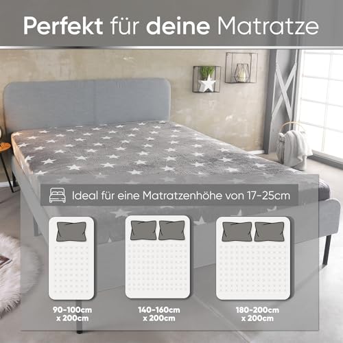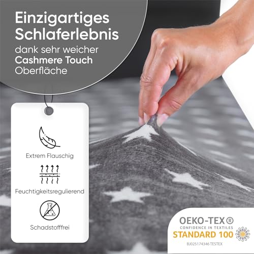 DER BEZUG UNSERER KONKURRENZ IST OFT AUS LANGWEILIGEM Material, das weder weich noch unter Dampf stehen ist. Unser Bettlaken nur ist heutig der Einzige, der zugleich mit sonderlich weichem Cashmere-Touch und Jersey-Stretch ausgestattet ist. So ist das Spannbetttuch flauschig und dauerelastisch!