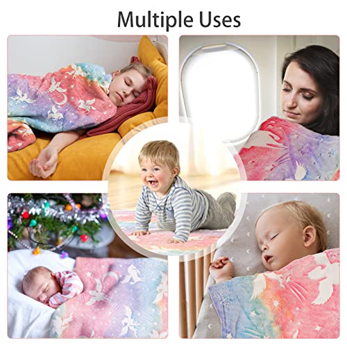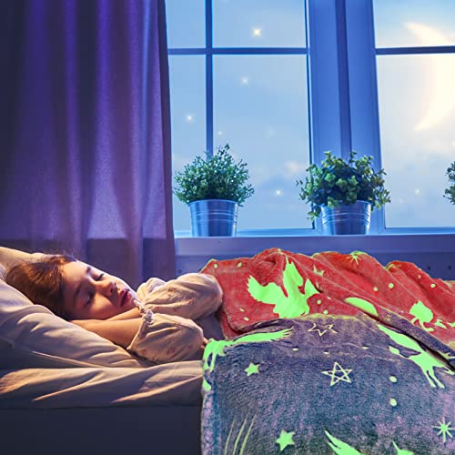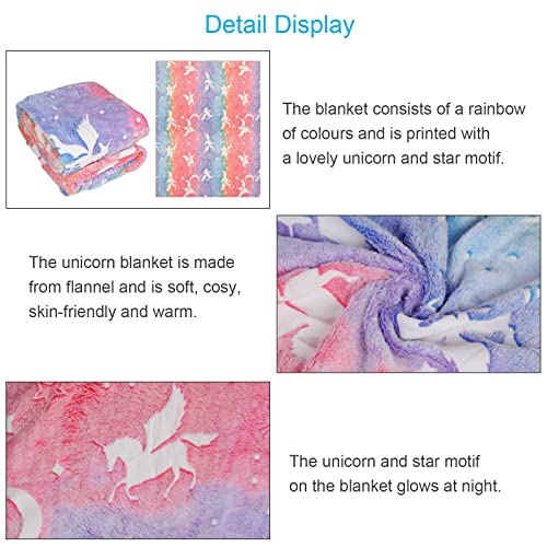 Glow-in-the-dark-Design: Die Plüschdecke aus Flanell ist mit Einhorn- und Sternenmotiven versehen, die nachts leuchten. Es schafft eine sichere Umgebung für Kinder in einer kraftlos beleuchteten Umgebung, damit sie sich nicht fürchten.