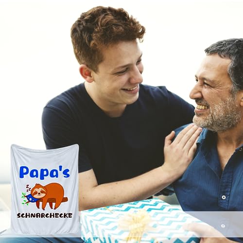 Niedliche Kuscheldecke: Unsere Papa Kuscheldecke ist mit einem niedlichen Faultier Muster und den Worten „PAPAS SCHNARCHECKE“ bedruckt. Die Papa Decke sieht wunderschön kuschelig aus und ist perfekt für Papa. Schenken Sie diese Decke Ihrem Papa und er wird angenehm überrascht sein.