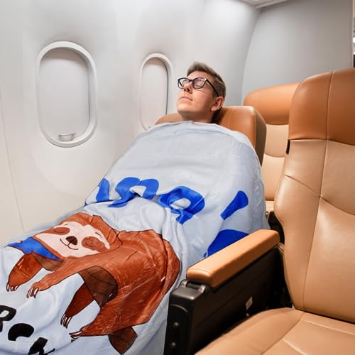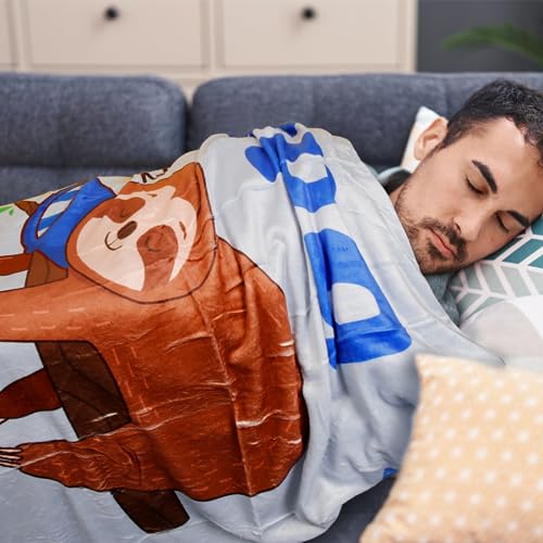 Die Papa Decke ist mit einem schlafenden Faultier bedruckt.